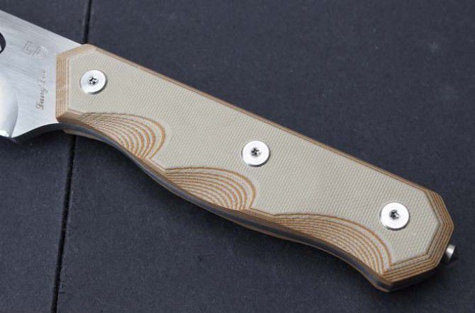 LD狼啸直刀 全 长:250mm 刃 长:123mm 柄 长:125mm 刃 宽:35mm 刃 厚:5.1mm 刃 材:D2 重 量:477g(含包装) 硬 度:58HRC 表 面:沙光 柄 材:彩G10 其 他:头层牛皮+硬纸盒