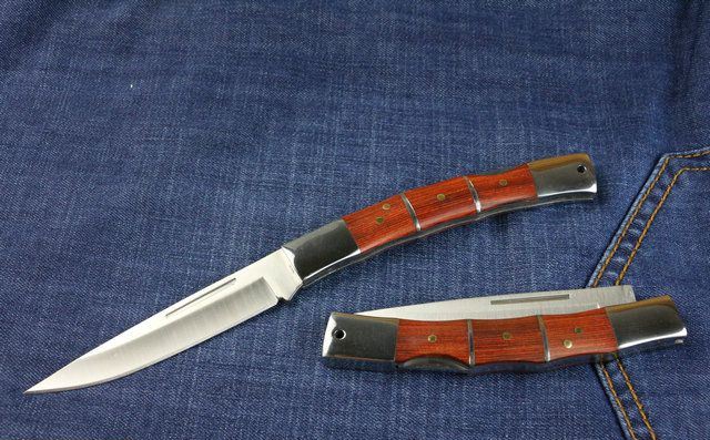 竹折折刀(高品质) 全 长:20.2cm 刃 长:8.5cm 柄 长:11cm 刃 宽:1.8cm 刃 厚:2.5cm 刃 材:440C 重 量:120g(含包装) 硬 度:58HRC 表 面:砂光 柄 材:实木+钢片 锁 型:线锁 其 他:原厂白盒