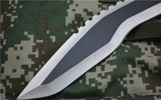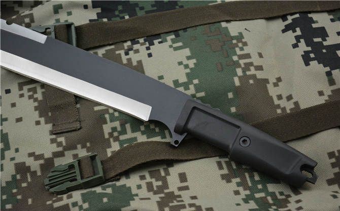 刃长:36.5cm 柄长:12.5cm 刃厚:6mm 刃宽: 6cm 刃材: 5Cr13 柄材: ABS 硬度: 55HRC 毛重:920克 表面处理:氧化黑 配皮套