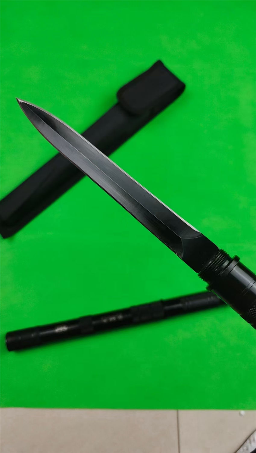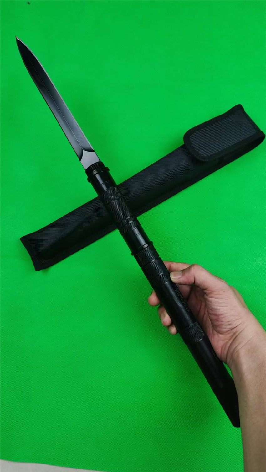 完全反接 材质:不锈钢、铁管 全长:55CM(最长) 刃长:19CM 刃厚:4.8CM 管径:3.25CM 重量: 560g(含包装)