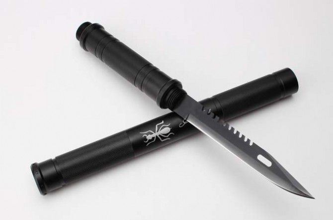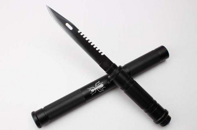 蚂蚁多功能警用棍刀 全长:46CM 刃长: 17.5C 接长:63CM 管径: 3.CM 刀厚:0.47CM 刃宽: 2.3CM 重量: 879g(含包装) 刃材:5Cr13Wov 硬度: 56HRC 配硬纸盒