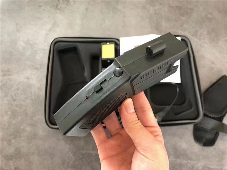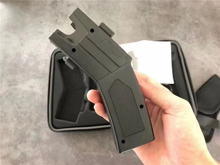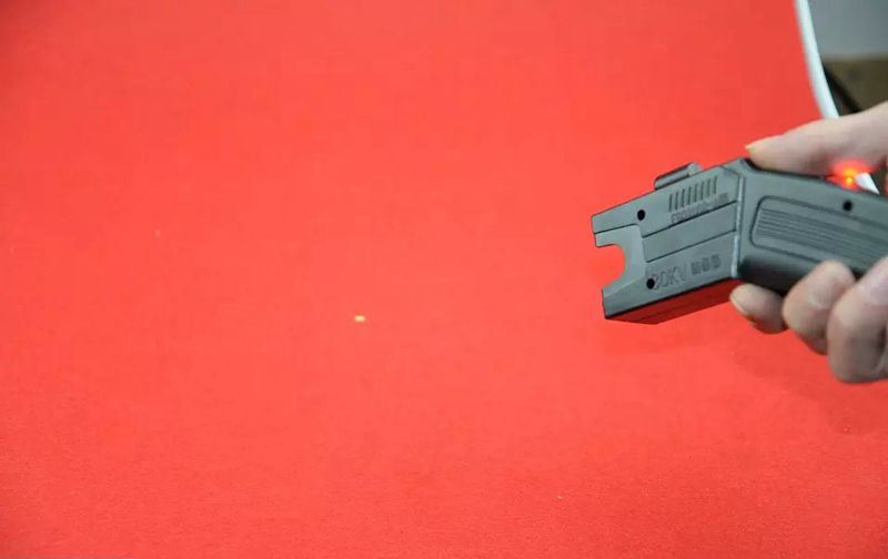 1、首先握住远射电子防暴器,将红外瞄准线对准目标.