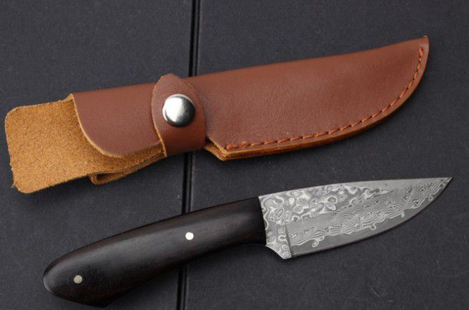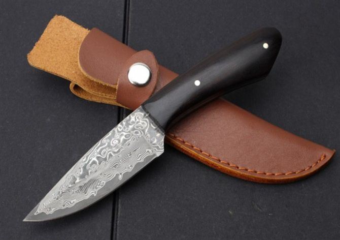 黑狐大马士黑檀木小直刀 全 长:193mm 刃 长:95mm 柄 长:88mm 刃 宽:29mm 刃 厚:2.8mm 刃 材:大马士革 重 量:196g(含包装) 硬 度:58HRC 表 面:大马士革原纹 柄 材:黑檀木 锁 型:定锁 其 他:配牛皮套+纸盒