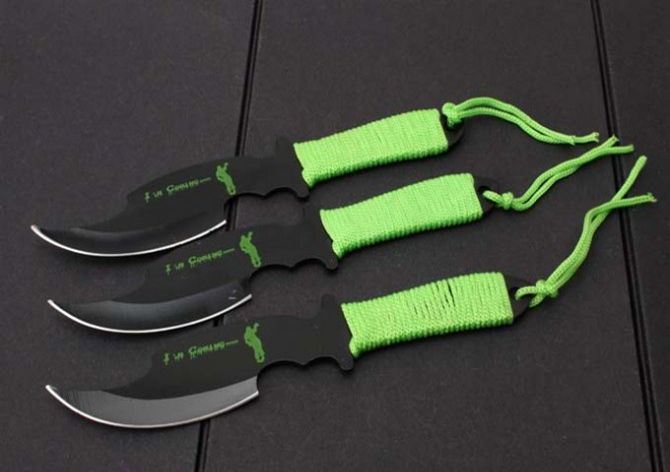长度:18.8cm 最宽:3.4cm 刃厚:2.3mm 刀套:尼龙套包 总重:234g 表面:黑色 其它:3支装
