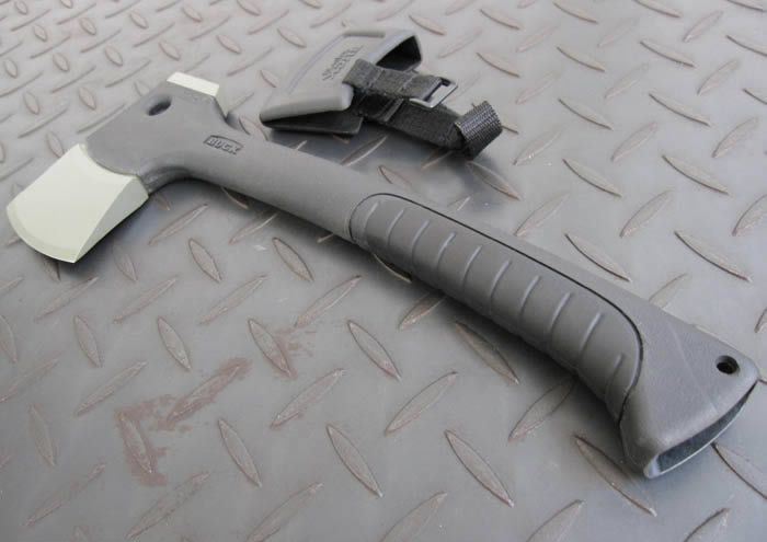 巴克757野营手斧(正品) 斧 宽: 12.2cm 斧身最厚度:1.4cm 刃 材: 高碳锻打钢 硬 度: 58-60HRC 表 面: 粉末涂层 刃 长: 7cm 柄 长: 31.50cm 柄 材: 高抗冲击性玻纤塑胶(经测试:在5楼高的高空将斧子自由落下,不断裂,只是稍微擦伤) 刀 套: 玻纤塑胶,有BUCK标志 重 量: 05kg 包 装:原品包装