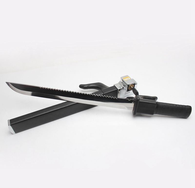 产品尺寸:长62CM 高9.5CM 刀身总长:约45CM 产品重量:毛重2.2kg/净重3.6kg 产品材质:精钢合金 真皮 产品颜色:银黑色 产品配件:原装钥匙两把