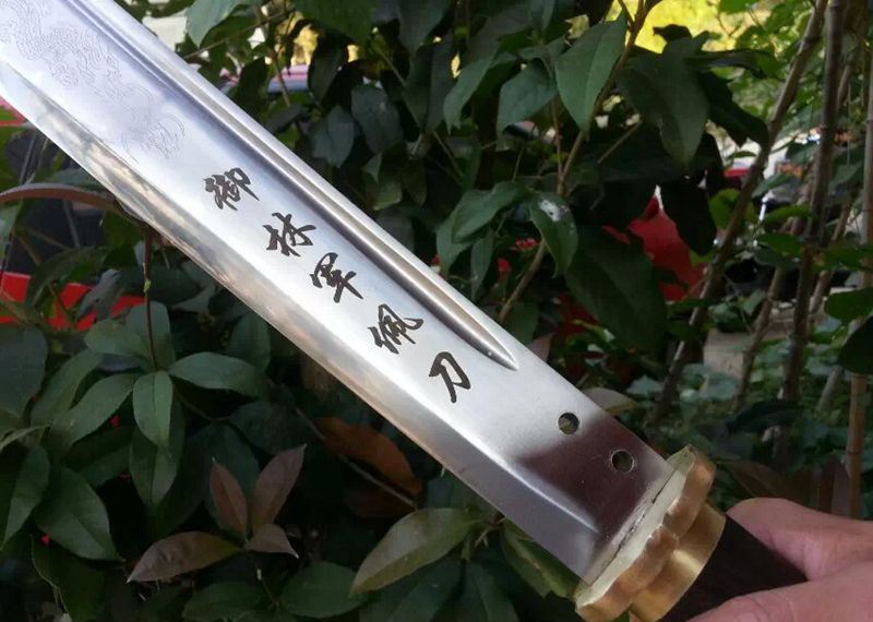 明朝御林军神勇佩刀 全长:78cm 刃长:50cm 刃宽:5cm 材质:高猛材料手工打造开锋 对于现代属于镇宅逼邪之宝刀