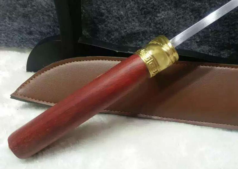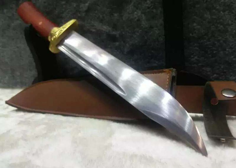 红木柄花纹刚铜装小猎刀