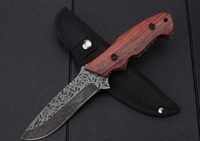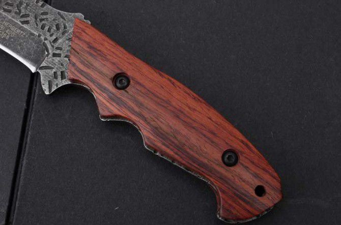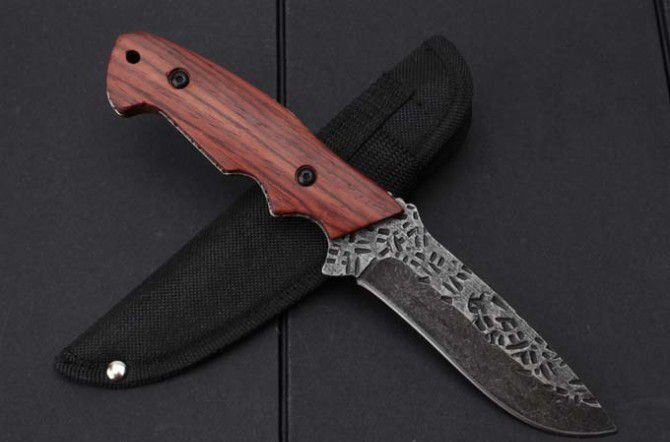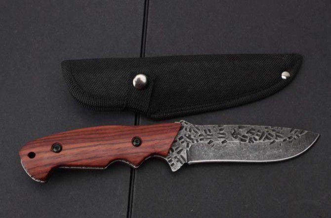 LM033锻打直刀 全 长:235mm 刃 长:123mm 柄 长:125mm 刃 宽:30mm 刃 厚:4.0mm 刃 材:7Cr15Mov 重 量:229g(含包装) 硬 度:59HRC 表 面:石洗+锻打 柄 材:一体钢+红木柄 锁 型:定锁 其 他:配尼龙套