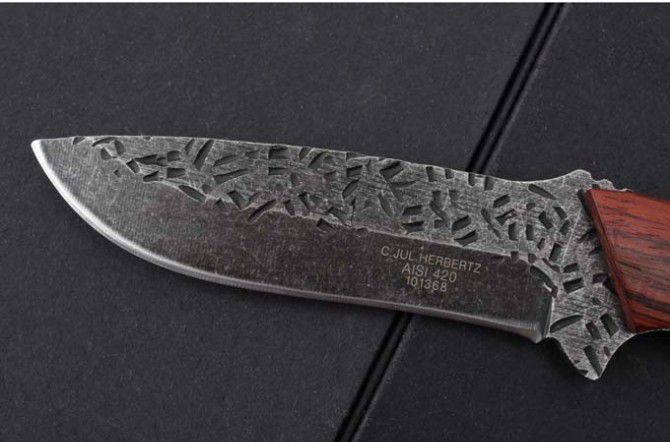 全 长:235mm 刃 长:123mm 柄 长:125mm 刃 宽:30mm 刃 厚:4.0mm 刃 材:7Cr15Mov 重 量:229g(含包装) 硬 度:59HRC 表 面:石洗+锻打 柄 材:一体钢+红木柄 锁 型:定锁 其 他:配尼龙套