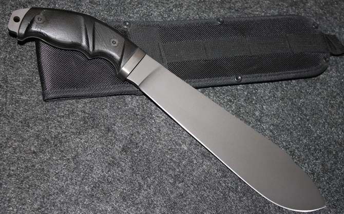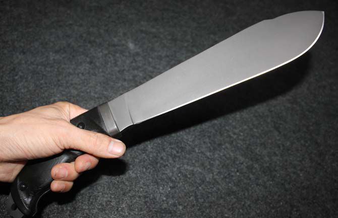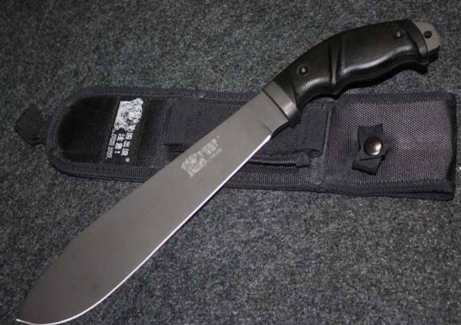 全长:40cm 刃长:24cm 柄长:14cm 刃厚:6mm 刃最宽:5.6cm 刃材: 5Cr13 硬度: 56HRC 净重:750克 毛重:950克 柄材:进口橡塑(耐高温) 表面处理:镀钛 其它:附尼龙套和彩盒,手感比KH砍刀更佳