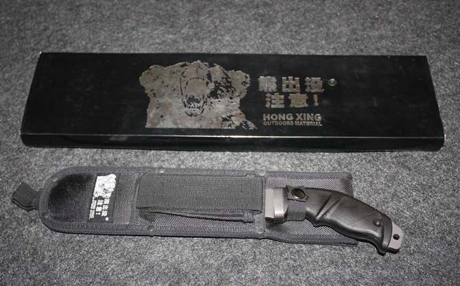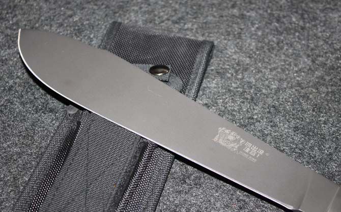 熊出没柳叶中弯刀 全长:40cm 刃长:24cm 柄长:14cm 刃厚:6mm 刃最宽:5.6cm 刃材: 5Cr13 硬度: 56HRC 净重:750克 毛重:950克 柄材:进口橡塑(耐高温) 表面处理:镀钛 其它:附尼龙套和彩盒,手感比KH砍刀更佳