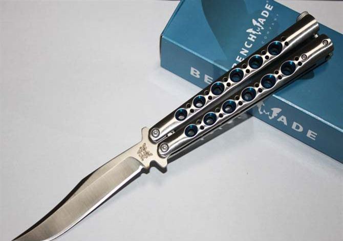 经典蝴蝶甩刀蓝龙BM43(精铸柄) 全长:24CM(打开) 刃长:9.5CM 刃厚:0.3CM 刃材料:进口440C 硬度:57-58 重量:153克 刀鞘:刺绣尼龙刀鞘铸钢柄镂空,压弹出刀包装Benchmade高级纸盒