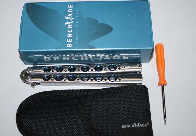 全长:24CM(打开) 刃长:9.5CM 刃厚:0.3CM 刃材料:进口440C 硬度:57-58 重量:153克 刀鞘:刺绣尼龙刀鞘铸钢柄镂空,压弹出刀包装Benchmade高级纸盒