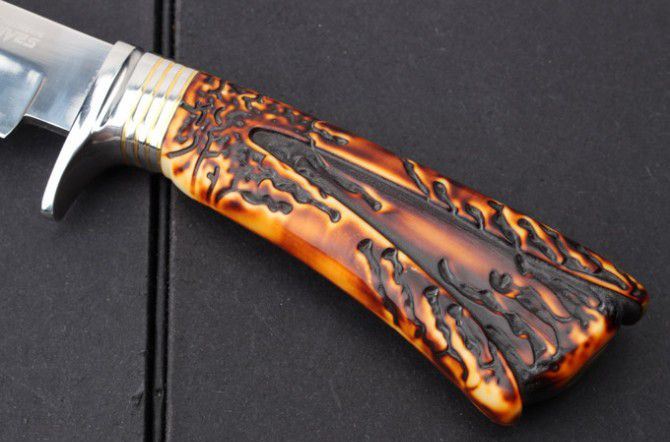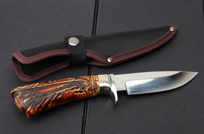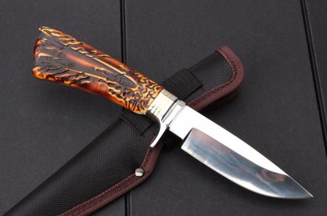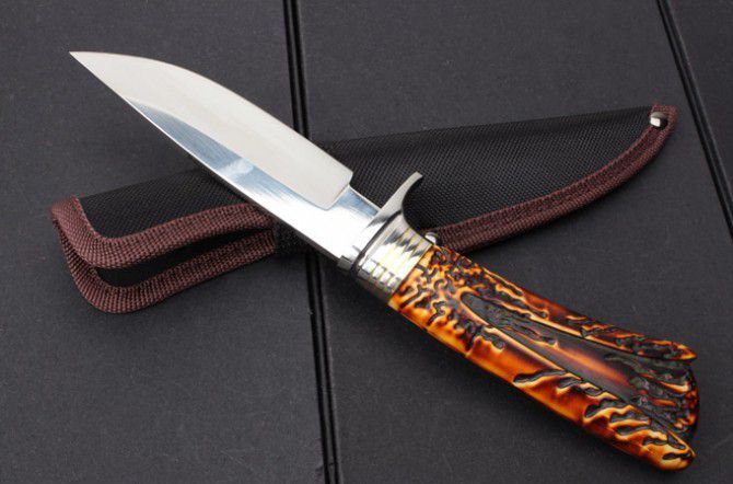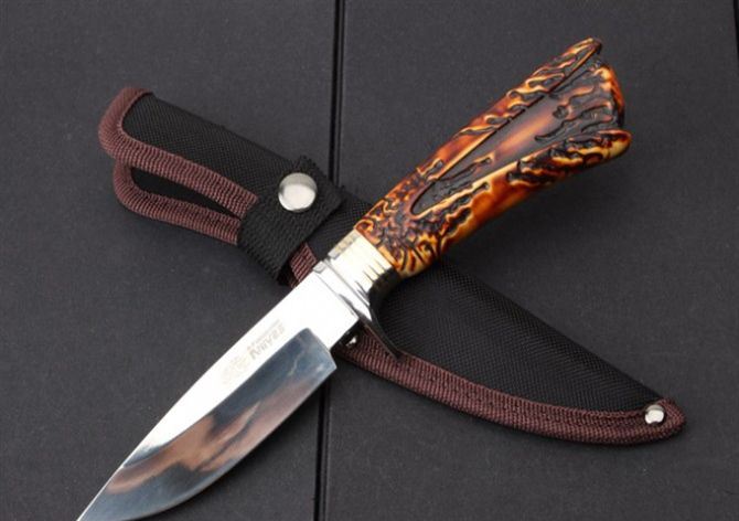 S031A复古直刀 全 长:255mm 刃 长:123mm 柄 长:130mm 刃 宽:32mm 刃 厚:4.2mm 刃 材:7Cr15 重 量:309g(含包装) 硬 度:57HRC 表 面:镜光 柄 材:护手钢头+复古兽骨+尼龙套 配彩盒 锁 型:定锁
