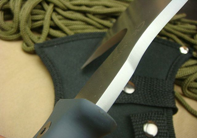 全 长: 25.8cm 刃 长: 12cm 柄 长: 12m 刃 材: 5Cr13MoV 硬 度: 57HRC 表 面: 砂光 刃 厚: 0.58m 净 重: 760包装物