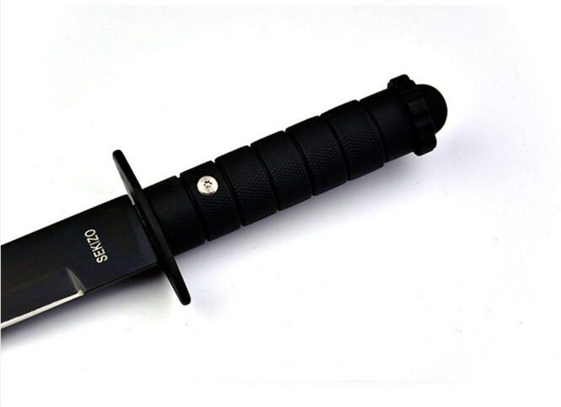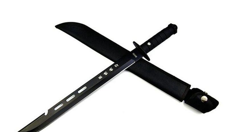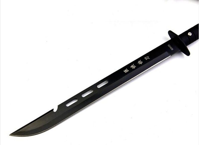 全长:51cm 刃长:35cm 柄长:12.5cm 刃厚:3mm 表面:发黑 刃材:440 硬度:55HRC 刀柄:ABS 重量:350g 备注:带尼龙刀套