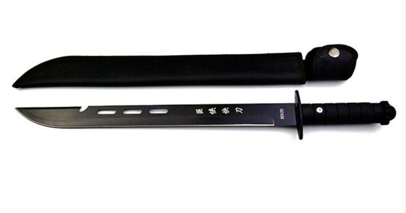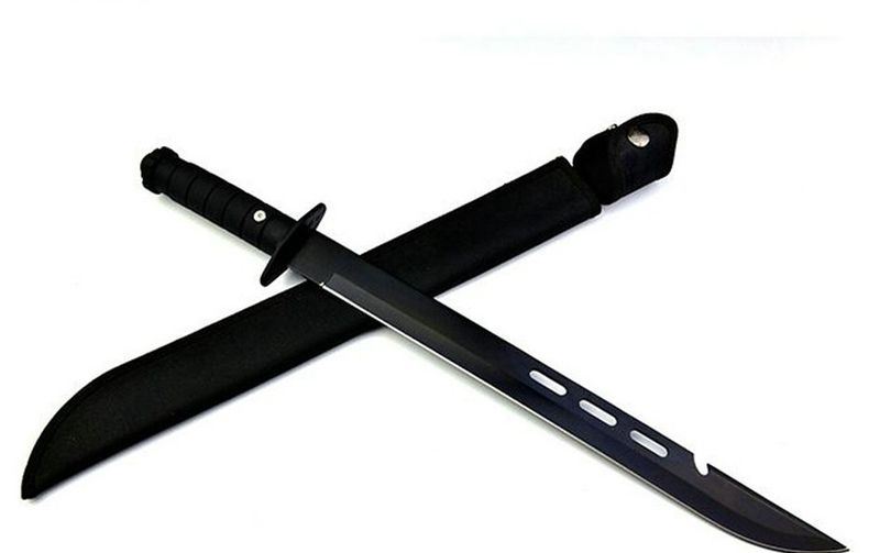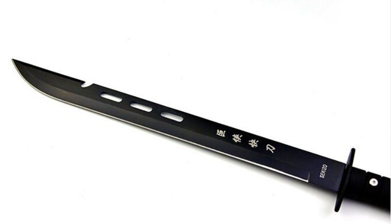 巨侠快刀 全长:51cm 刃长:35cm 柄长:12.5cm 刃厚:3mm 表面:发黑 刃材:440 硬度:55HRC 刀柄:ABS 重量:350g 备注:带尼龙刀套