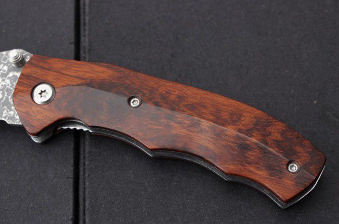 SY035蛇纹木大马士革折刀 全 长:180mm 刃 长:75mm 柄 长:103mm 刃 宽:20mm 刃 厚:2.3mm 刃 材:大马士革 重 量:131g(含包装) 硬 度:58HRC 表 面:大马士革原纹 柄 材:蛇纹木 锁 型:侧锁 其 他:配皮套