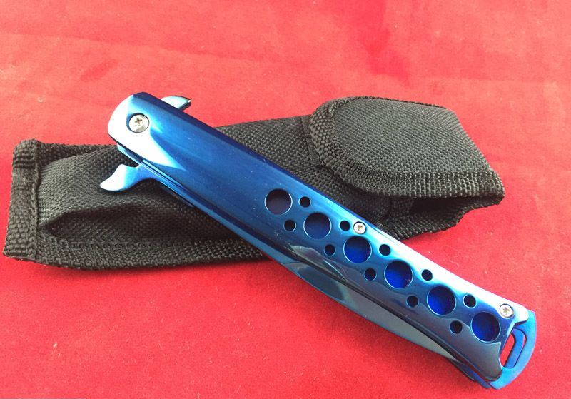全长:22.5cm 刃长:12.5cm 刃厚:0.3cm 重量:180克 柄表面:蓝 刃材料:440 TAC-FORCE全钢小剑鱼半自动折刀,自动快速打开机制,细长刃身,如同箭鱼长喙,有超强穿刺能力,锋刃。
