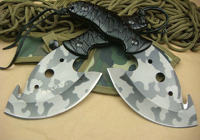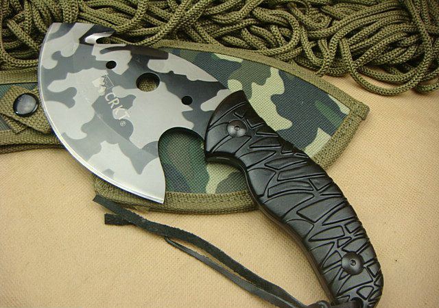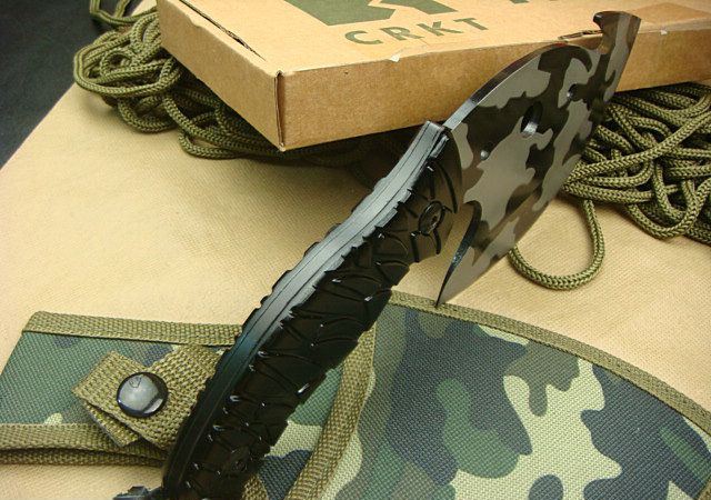哥伦比亚河CRKT-救生斧 全长:23.5cm 刃长:13.8cm 柄长:12.5cm 刃厚:4mm 刃材: 7Cr17 刀重:410克 硬度: 55-57HRC 柄材: 花纹压铸铝 刀套:迷彩袋 刃面处理:氧化