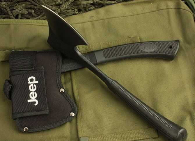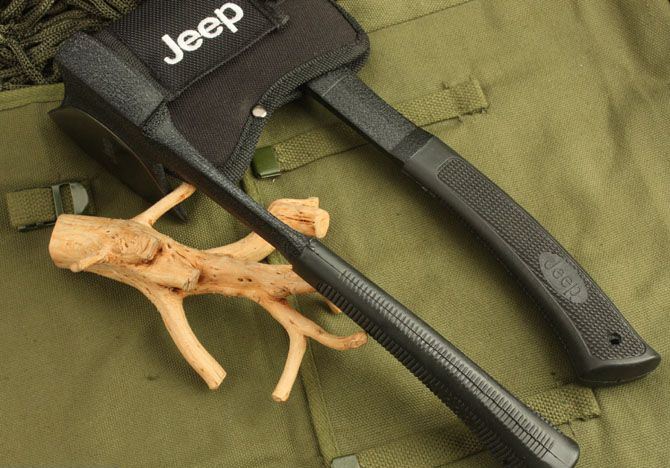 jeep消防专用斧 全长:27cm 刃宽:8.5cm 刃厚:1.8cm 刃材:5CR13 硬度:55HRC 表面:喷柒 柄材:ABS 柄长:14 净重:630克 毛重:770克 刀鞘:尼龙套 品质:高品质,OEM版