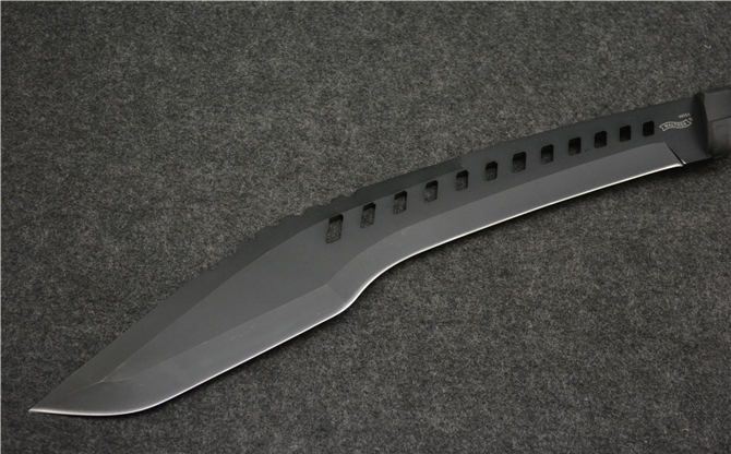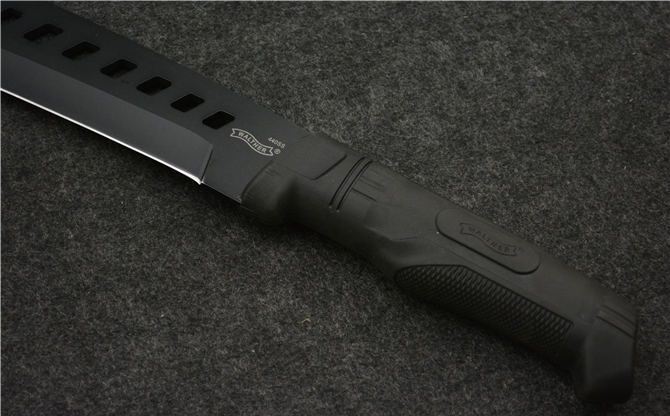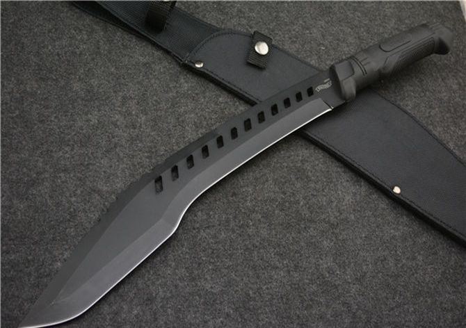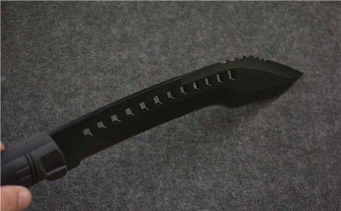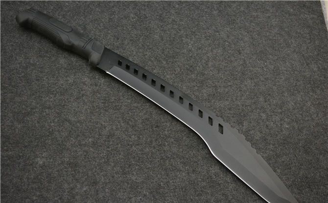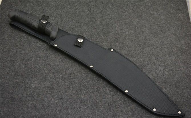全 长: 52.5CM 刃 长: 38CM 刃 厚: 0.45CM 刃 材: 440 硬 度: 57HRC 表 面: 发黑 柄 材: 橡胶 刀 鞘: 尼龙套