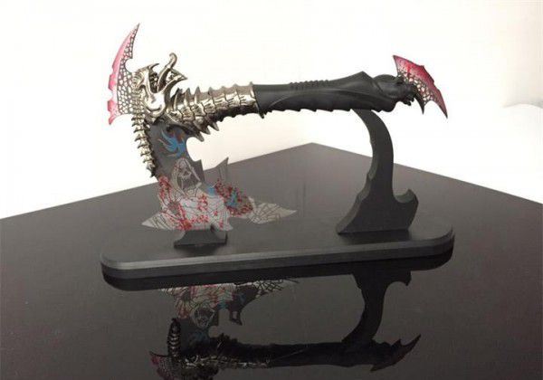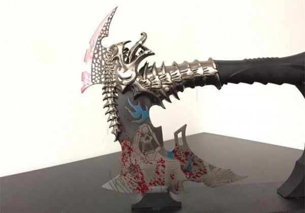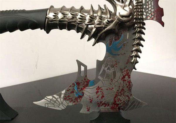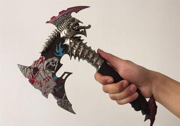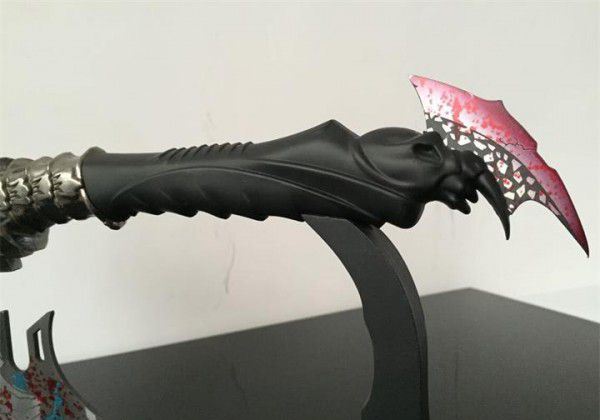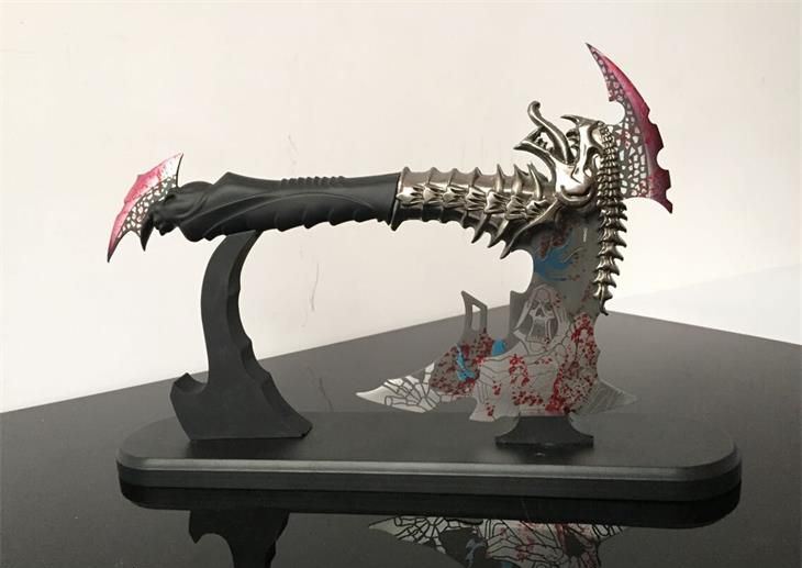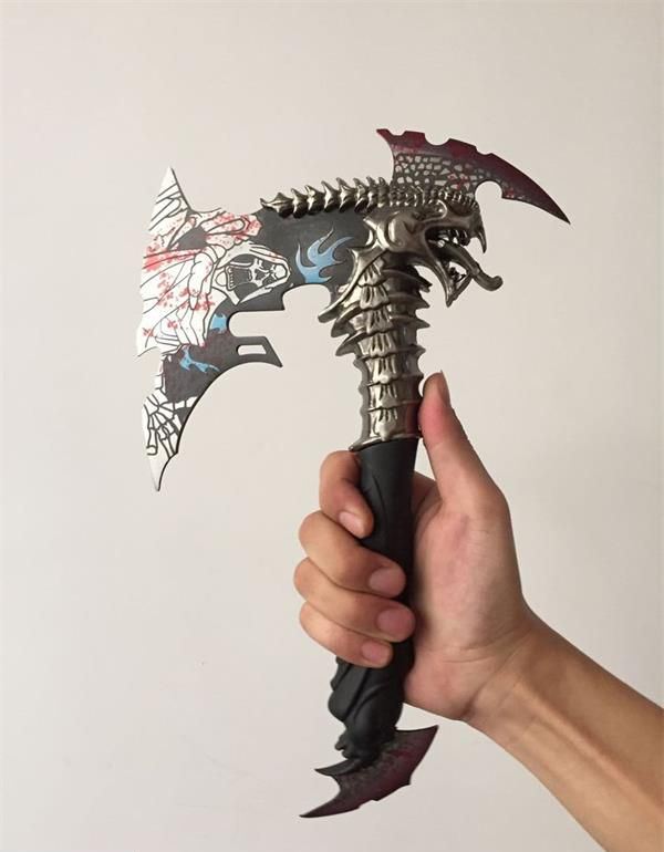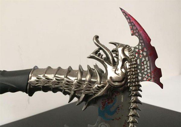 魔鬼战斧头 全长:30cm 刃长:15cm 柄长:12cm 重:2.1斤 手柄及配件材料:锌铝合金/优质不锈钢 剑身材料:不锈钢 工艺:锌合金材料,精铸,镀金,不锈钢刀刃(赠送刀架) 主要用途:未开刃 居家镇宅,装饰摆设,电影收藏剑 此剑是由锌铝合金精雕细刻而成,造型美观、古朴典雅、细致新颖、纹饰明了,具有极高观赏和收藏价值 本产品适合场合:家庭装饰、办公室、会议室等场所,是馈赠亲朋好友的理想佳品。