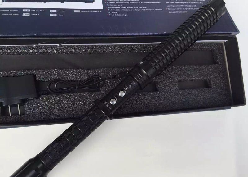具有高压电击防身 强光 弱光 爆闪 SOS功能。