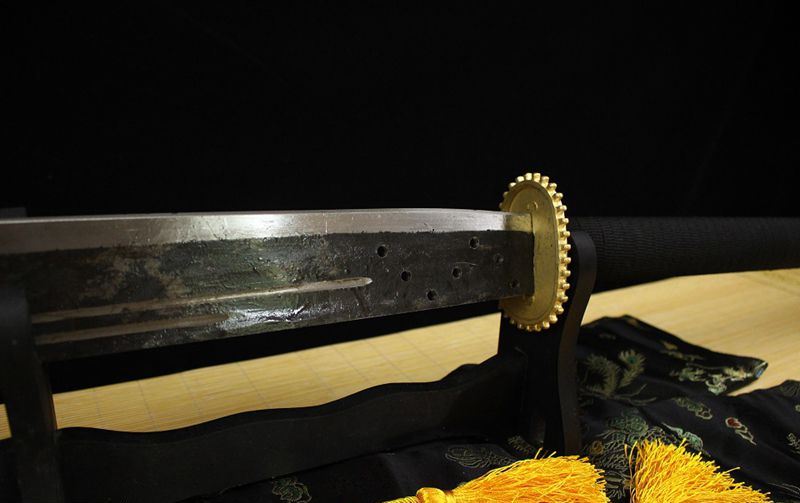 锰钢全铜七星战刀 全长:120CM 刃长:65CM 刃宽:8.3CM 刃厚:0.9 柄长:55CM 重:1.9KG