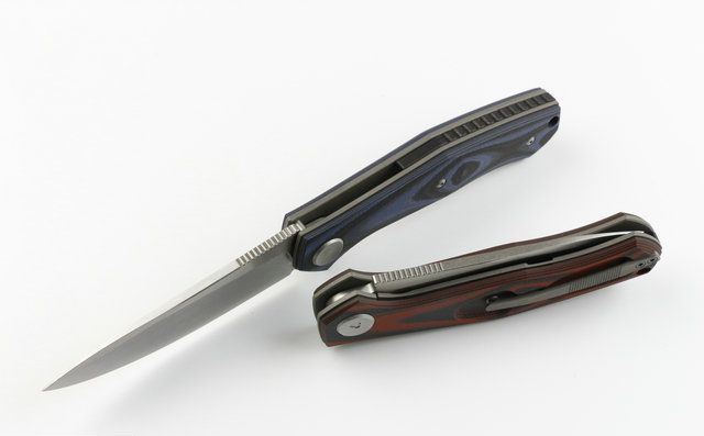 熊头刀匠(G10三色版) 全长:230mm 刃长:100mm 柄长:130mm 刃宽:30mm 刃厚:4.0mm 刃材:D2(深冷处理) 重量:200g 硬度:58-60HRC 表面:精细沙光 柄材:TC4钛合金+蓝黑,红黑,麻面G10三色,任选。 刀夹:TC4钛合金 锁型:一体线锁。 螺丝:所有螺丝420不锈钢、硬度HRC45、全CNC精雕加工。 结构:一体锁杆式线锁结构、锁刀陶瓷定位珠、内置轴承。 其他:配拆刀工具一支。