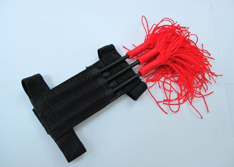 绑腿飞针三件套 全长:15 半径(粗):0.5 钢材:420不锈钢 硬度HRC 52 单支重量:30克 整套重量:100克 配尼龙套(有伸缩带,可以绑腿) 每套包含3支大小一样的飞阵镖,尾段扎红绥