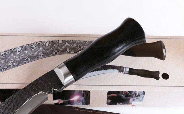 全 长:44.2cm 刃 长:27.6cm 柄 长:14cm 刃 宽:5.3cm(最宽处) 刃 厚:6.3mm 刃 材:7CR17MOV 硬 度:58HRC 刀 柄:彩木柄 表 面:纯锻纹 重 量:900克(含包装) 备 注:原厂彩盒,优质真牛皮套