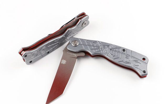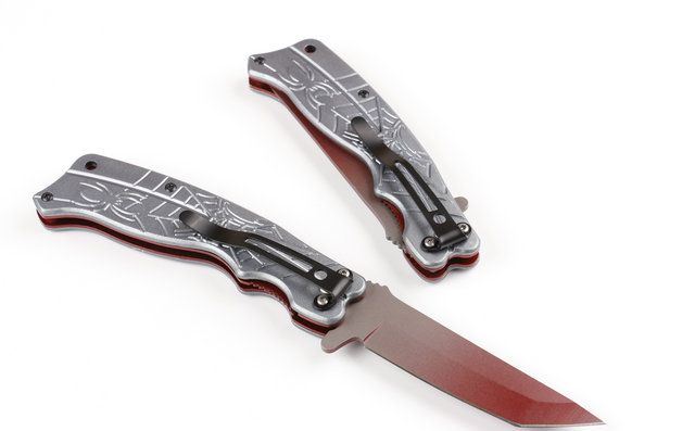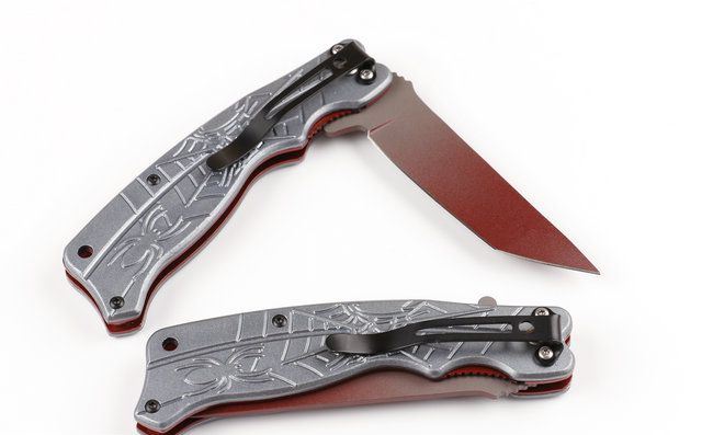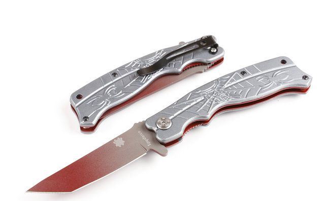 蜘蛛J12快开折刀 全长:20.2cm 刃长:8cm 柄长:11.6cm 刃厚:0.23cm 刃宽: 2.3cm 刃材: 5Cr13 柄材: 铝片 硬度: 56HRC 净重:120克 锁定:线锁 表面处:镀钛 其他:原厂彩合