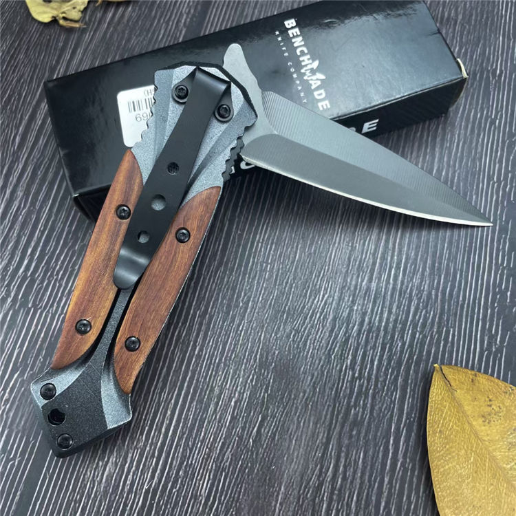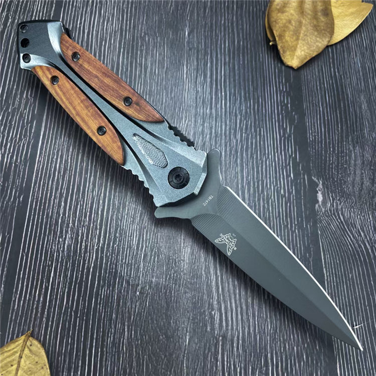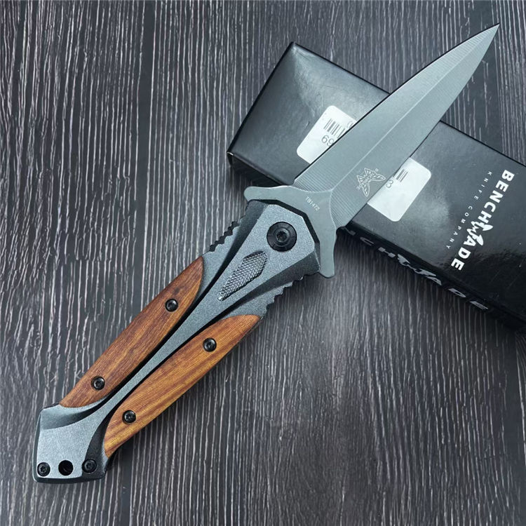 蝴蝶DA27直刺折刀 刃材:3Cr13 硬度: 56HRC 全长:20CM 刃长:8.5CM 刃厚: 0.27CM 刃宽:2CM (最宽处) 柄长: 11.5CM 重量:115克 涂层:灰钛 柄材: 红木片 锁定: 快开