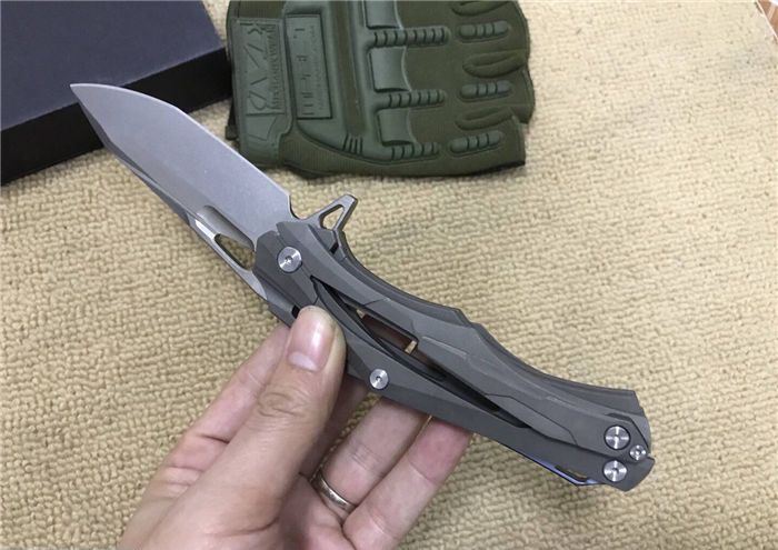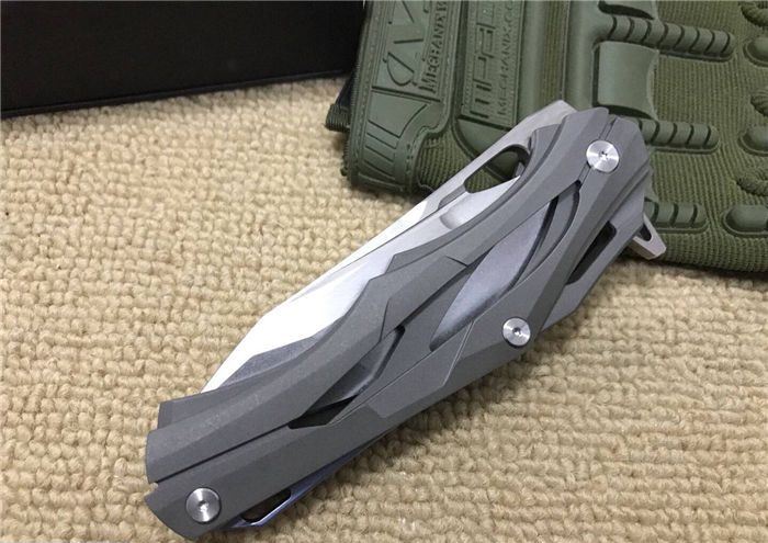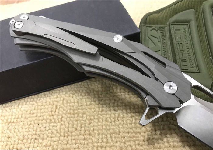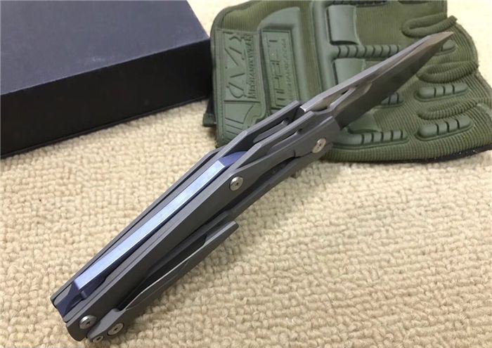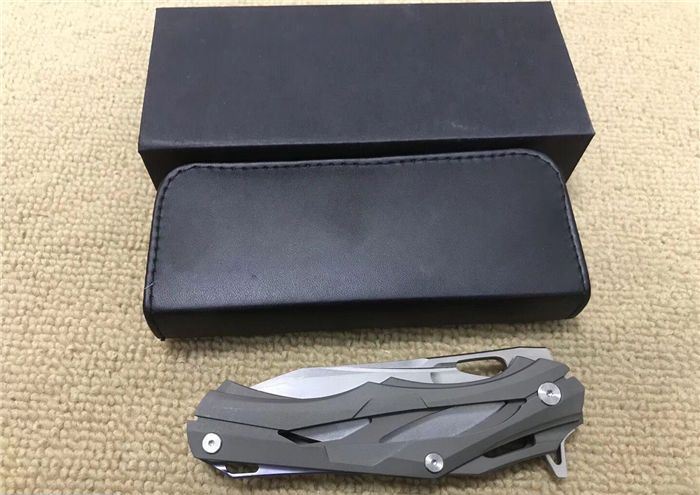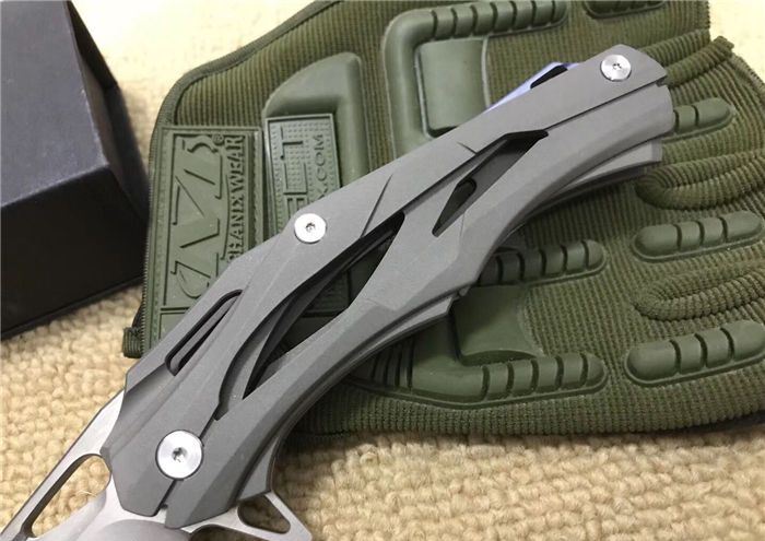 变型金刚(钛合金版) 全长:228mm 刃长:96mm 柄长:130mm 刃宽:30mm 刃厚:3.9mm 刃材:D2(深冷处理) 重量:310g(含包装物) 硬度:58-61HRC 表面:拉丝+石洗 柄材:手柄全TC4钛合金手柄电脑椤缕空、底骨TC4钛合金蓝色阳极电镀处理。 刀夹:TC4钛合金 锁型:分体插入锁杆式线锁。 螺丝:所有螺丝420不锈钢、硬度HRC45、全CNC精雕加工。 结构:分体插入锁杆式线锁结构、锁刀接触镶嵌合金粒、陶瓷定位珠、内置平面滚针轴承垫片。 其他:礼品盒和仿皮套.