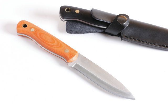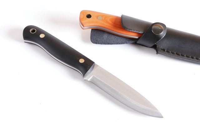 全长;21.8cm 刃长:10.2cm 柄长:11.2cm 刃厚:3.4mm 刃宽:2.6cm 刃材:7CR17MOV,V型开刃,比其它开刃极其锋利,不仿一试。 柄材:龙骨结构+橙色G10 硬度:59HRC 毛重:250克(含包装物) 刀套:皮套 表面处理:砂光
