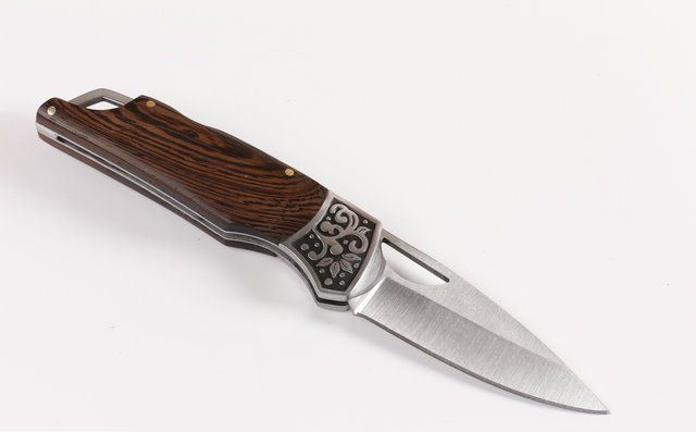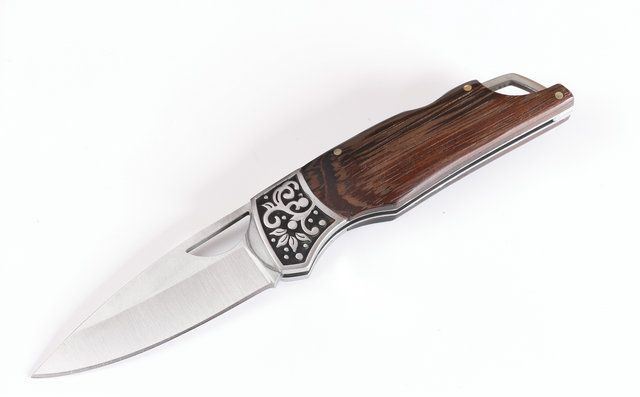 小燕雀折刀 全 长: 19.2cm 刃 长: 8.0cm 刃 宽: 2.9cm(最宽处) 闭 合: 11.2cm 硬 度: 57HRC 刃 厚: 0.28cm 重 量: 150克 表 面: 镜光 刃 材: 440C 柄 材: 全钢头雕花+鸡翅木 锁 闭: 传统式制尾锁 其 他: 尼龙套包装,刃口锋利
