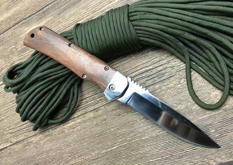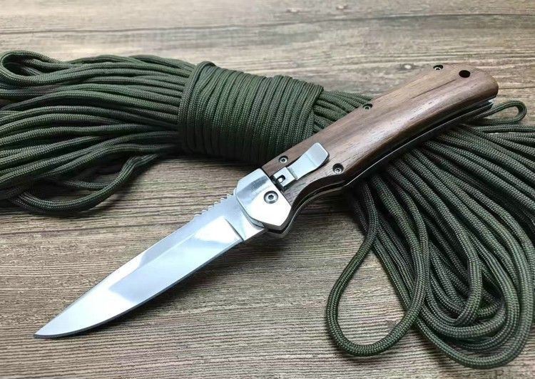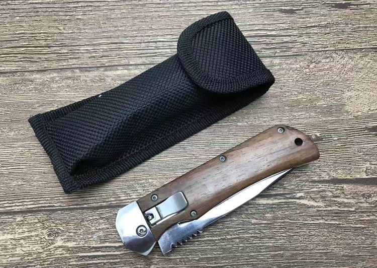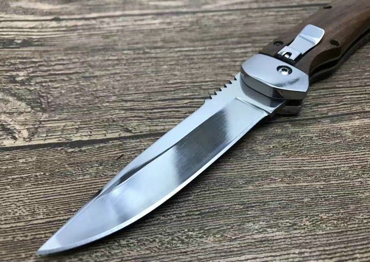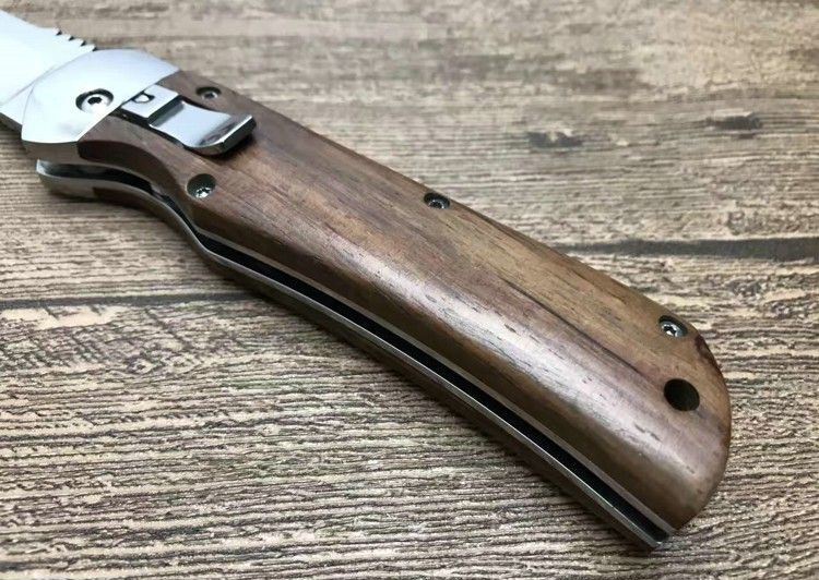 弹弹鱼FB1314横开折刀 全 长:212mm 刃 长:85mm 柄 长:120mm 刃 宽:20mm 刃 厚:2.8mm 刃 材:440C 刀 重; 140g 重 量:150g(含包装) 硬 度:57HRC 表 面:沙光 柄 材:天然鸡翅木 锁 型:横出开关 其 他:配尼龙套