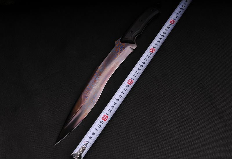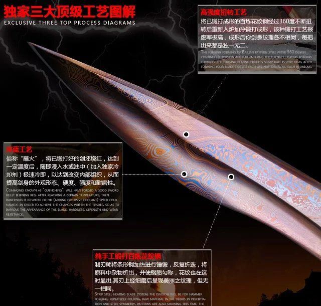 全长:42CM 厚:0.6公分 净重:700g 古法旋焊纹花纹钢锻造工艺 高硬度高锋利,可削纸砍铁
