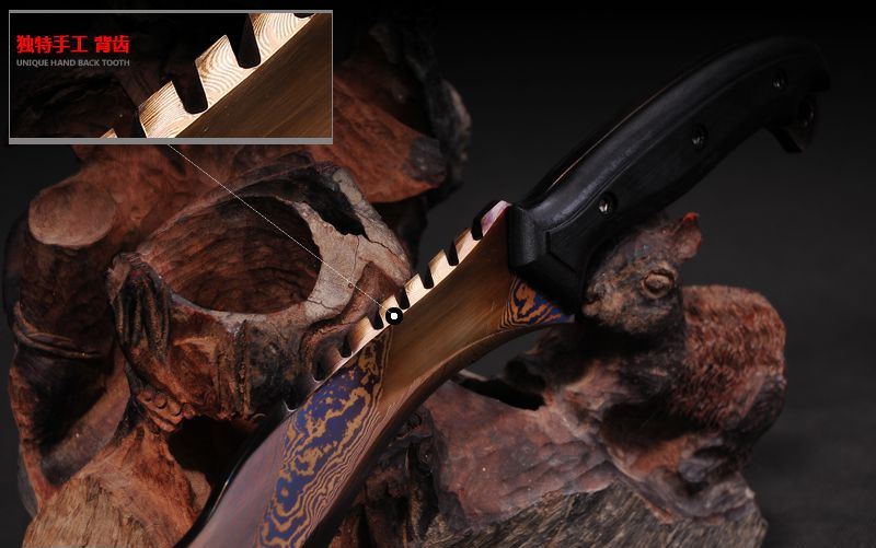 做工:手工锻打三层扭转纹,一体刀胚非常结实。