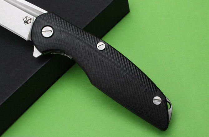 熊头G10柄折刀(石洗黑柄) 全 长:22.1cm 刃 长:9.2cm 柄 长:13cm 刃 宽:2.8cm(最宽处) 刃 厚:4.5mm 刃 材:8CR18MOV 硬 度 59-62HRC 刀 柄:黑色G10 表 面:石洗 锁定方式:一体线锁 重 量:310克(含包装) 备 注:带背夹,刀身内置轴承。