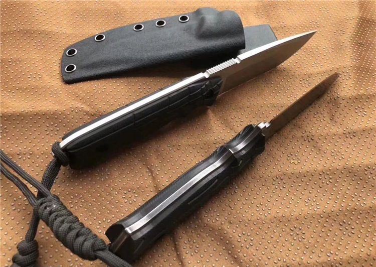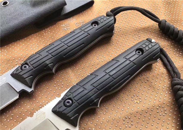黑龙挺进者战魂小直A2钢 全长:225mm 柄长:125mm 刃长:94mm 刃厚:5mm 硬度:60-61 HRC{真空热处理) 柄材:A级G10 刀鞘:进口Kydex鞘 表面:石洗和沧桑石洗 刃材:A2 刀重:约240克