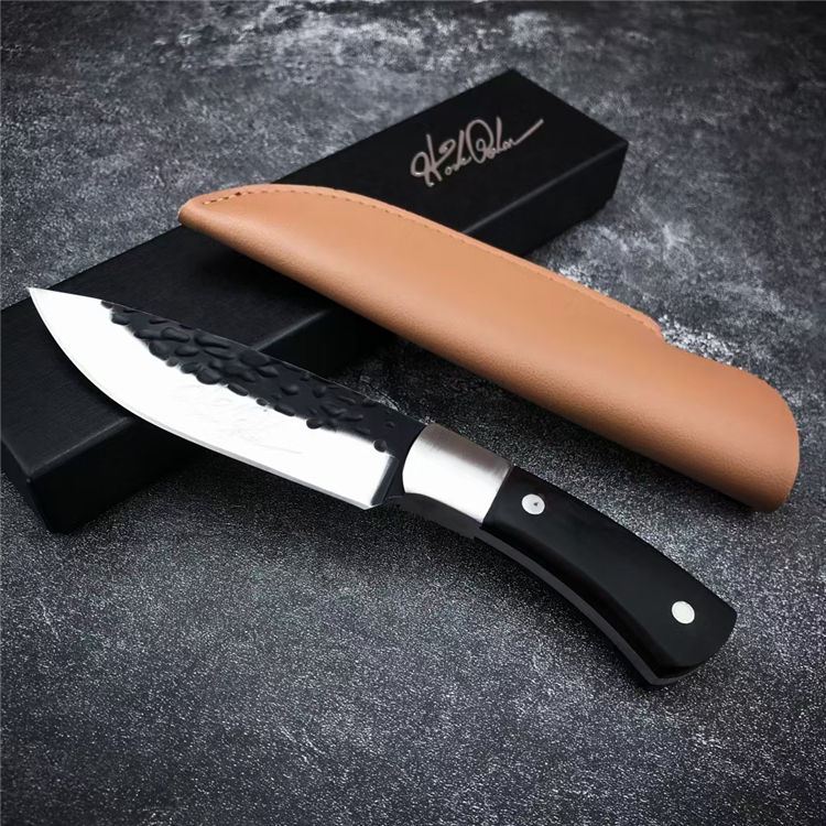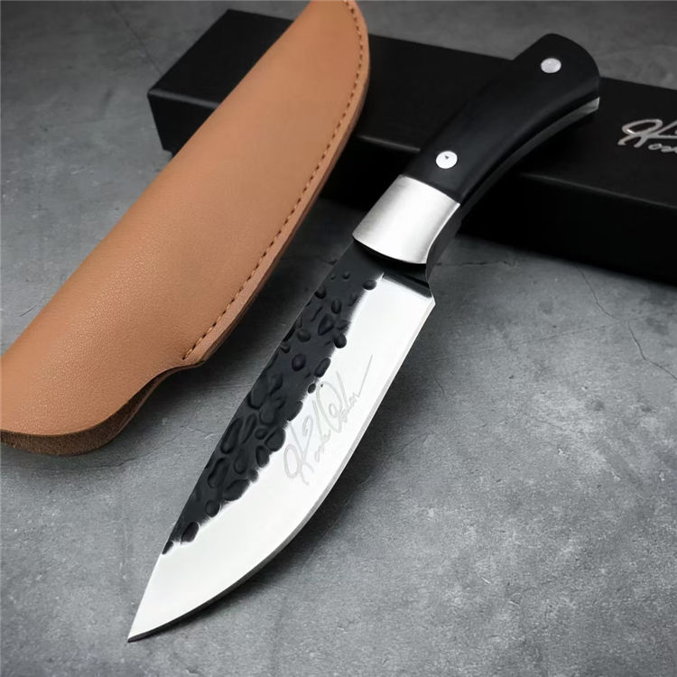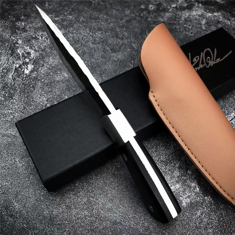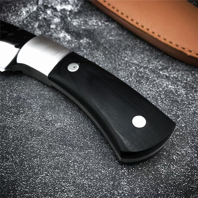 全 长:21.5cm 刃 长:11.5cm 柄 长:9.5cm 刃 宽:3.5cm 刃 厚:5.0mm 刃 材:3Cr13 重 量:330g(含包装) 硬 度:57HRC 表 面:砂光 柄 材:钢头+黑彩木 锁 型:定锁 其 他:配人造皮套和礼品盒