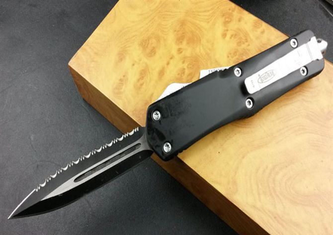 新伤齿龙边锯刃 全长:23CM 刃长:9CM 柄长:14CM 刃厚:0.3CM 硬度:56 HRC 刃材:440 表面:发黑 把手:航空铝合金 净重:235克(整刀) 毛重:365克(含包装物) 开合:双动作,直推开关,自动弹出和收回 包装:耐磨专用战术尼龙套。 口袋刀夹:弹簧刀夹 玻璃敲击器:不锈钢玻璃敲击器 高级礼品盒