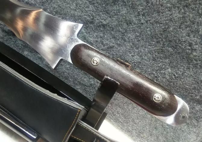 全长:55cm 刃长:38cm 刃宽:7cm 刃材:高速钢 柄长: 15cm 硬度区间:60HRC 性能:全开锋,砍铁削纸断竹 包装:锦盒。 工艺:刀身精选优质锻钢手工锻造,经过淬火,回火等传统热处理工艺。 备注:手工产品存在误差,规格仅供参考,请以实物为准!