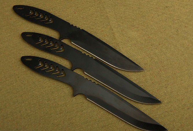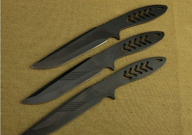 长度:19cm 最宽:2cm 刃厚:2.8mm 刀套:尼龙套 总重:200g 表面:氧化黑 其它:三支装