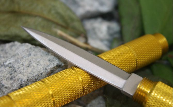 小管开信刀(金色) 接起全长:17cm 刃 长:5.5cm 柄 长:10.5cm 刃 厚:2.5mm 刃 材:420 硬 度:55HRC 重 量:30g 柄 材:钢管