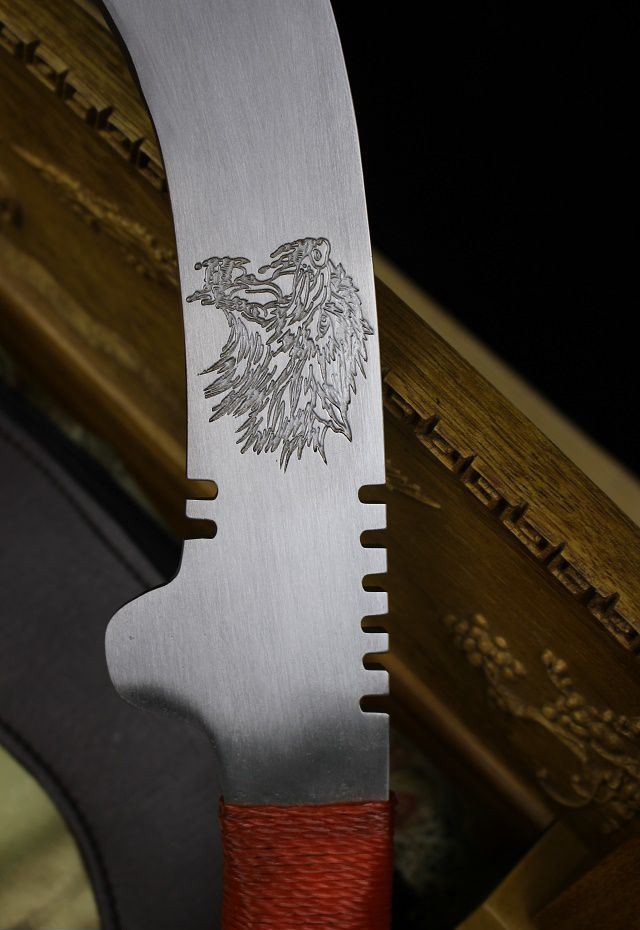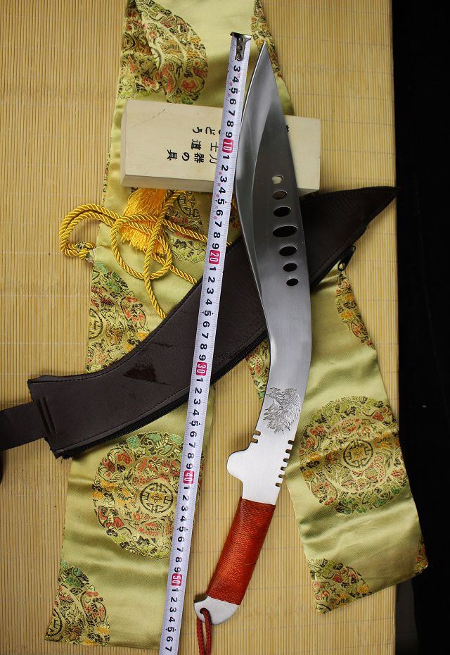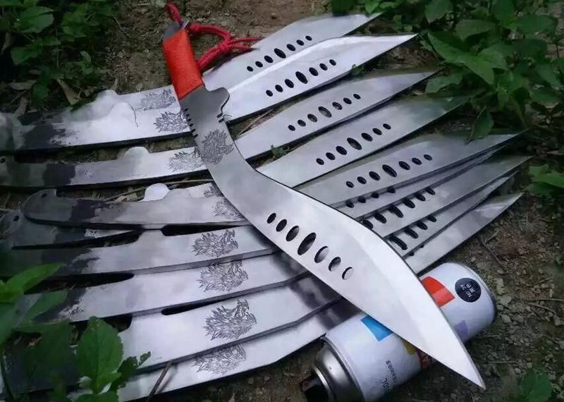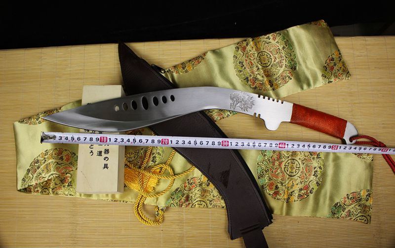 全长:54cm 刃长:28cm 柄长:10cm 刃厚:0.75cm 重量:1KG 刃材:锰钢,全开封可砍铁砍钢筋,户外生存把玩必备佳品