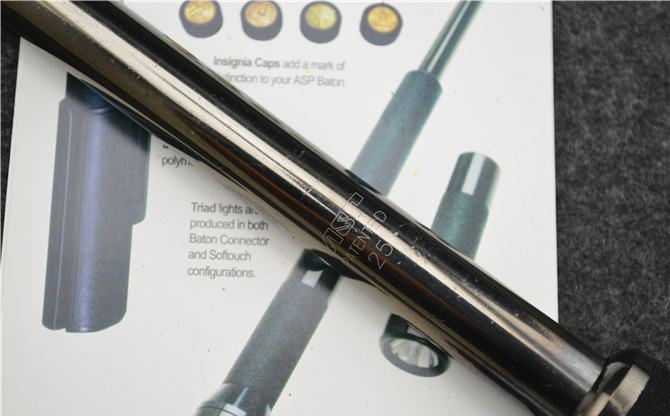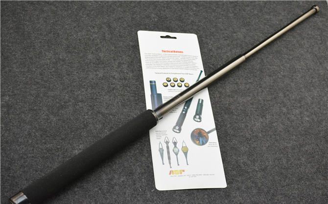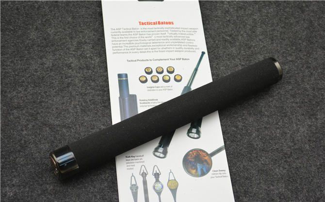 精仿美国ASP甩棍黑钛25寸硬铬版 棍体材料:高强度合金钢, 硬度大概58HRC(经测试,能吊起一辆汽车以上的重量) 棍把材料:黑色乙烯基合成(防滑材质,不会因流汗潮湿而滑手) 收缩长:23.8 CM (便携隐蔽) 甩出长:63.0 CM (常用长度) 净重:660克 表面: 黑钛 原版双面吸卡包装 其他性能:钢卡式,专门在接口处精密处理,处理后甩出锁定牢靠, 收回时,朝地面垂直一磕就回去了。